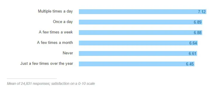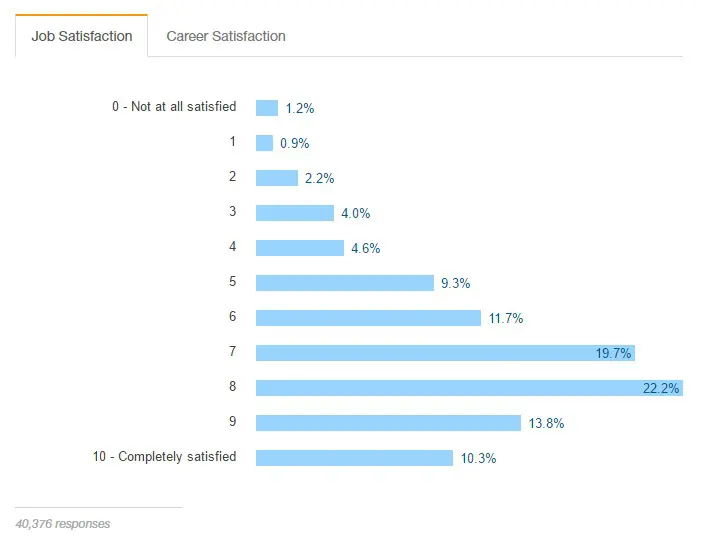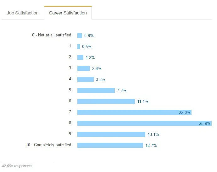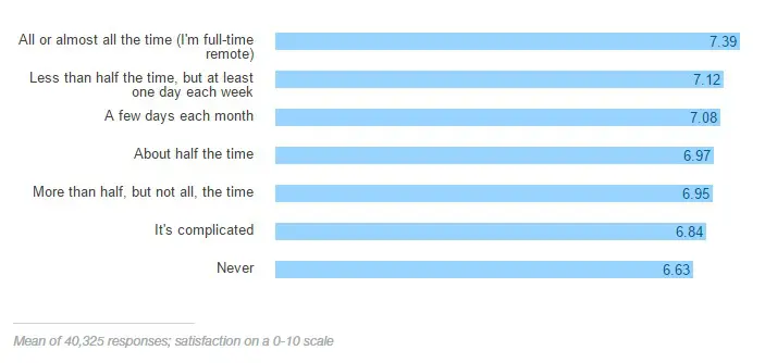 很显然二者之间还是有一定联系的。那些可以完全远程工作的开发者对职位的满意程度更高。