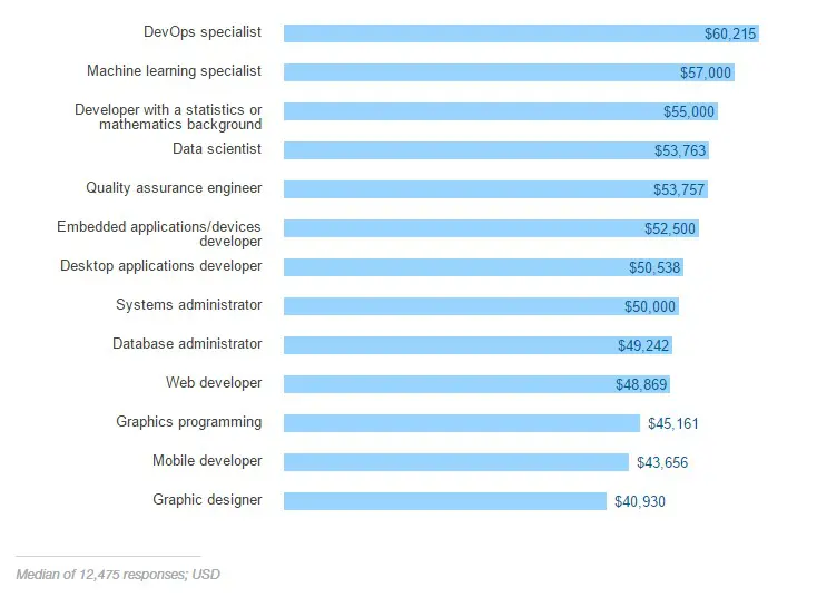 全球范围内,DevOps和机器学习开发者薪资最高。