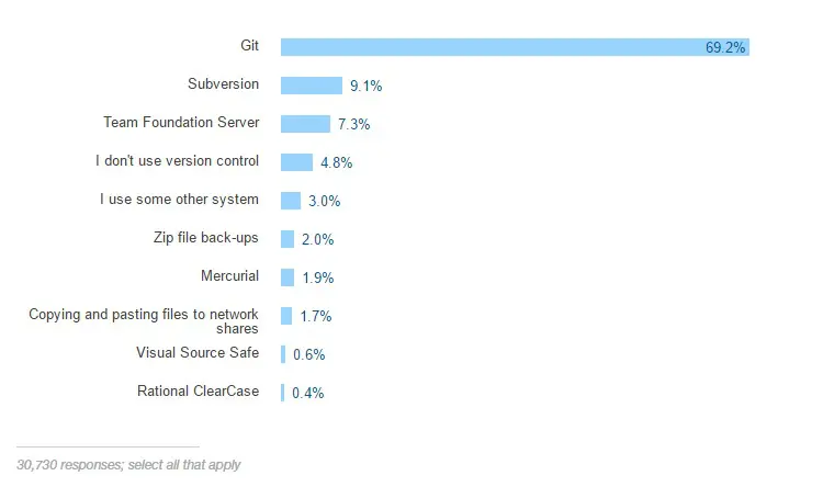 在追踪项目的时候, Agile和Scrum成为开发者使用最多的方法。还有42.8%的受访者表示他们会使用结对编程来相互提高。