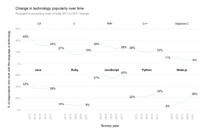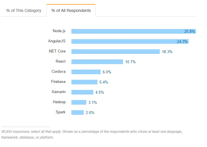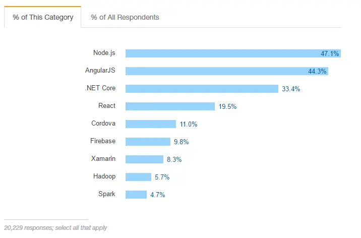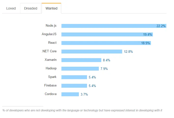 Node.js和AngularJS继续成为这个领域最受欢迎的技术。