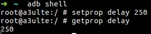 setprop delay 250可以用getprop命令看看设置的值是否正确: