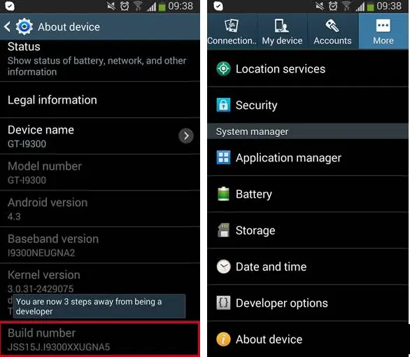 而且你的Android手机须要开启了Develop options (开发者选项,要开启好像一般是在Settings(设置)里的About device(关于本机)中按7次Build number那个地方),如下: