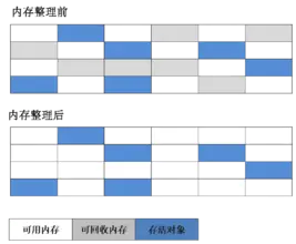 可以看出每次gc后内存千疮百孔,本来连续分配的内存块变得碎片化严重,之后再分配进入的对象再进行内存寻址变得困难。