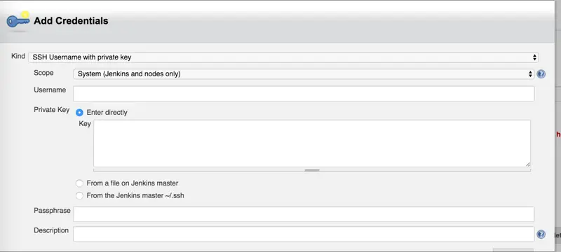 Jenkins的时候会新建了一个用户(jenkins),jenkins用户没有权限读取~/.ssh的权限。 - 解决方案:在Jenkins的界面中使用