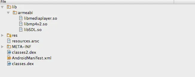 当然,我们也可以自己对app反编译来获取这些信息,不过相对麻烦一些,其实我们只要把APK文件解压了以后就可以看到项目用到了哪些.so文件了。如下图