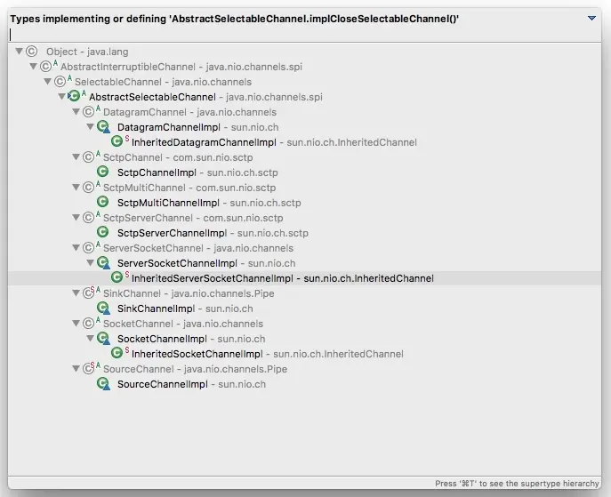 }当然,这是享受多态带来的好处的同时必须承受的。详细的Channel继承和实现关系如下: