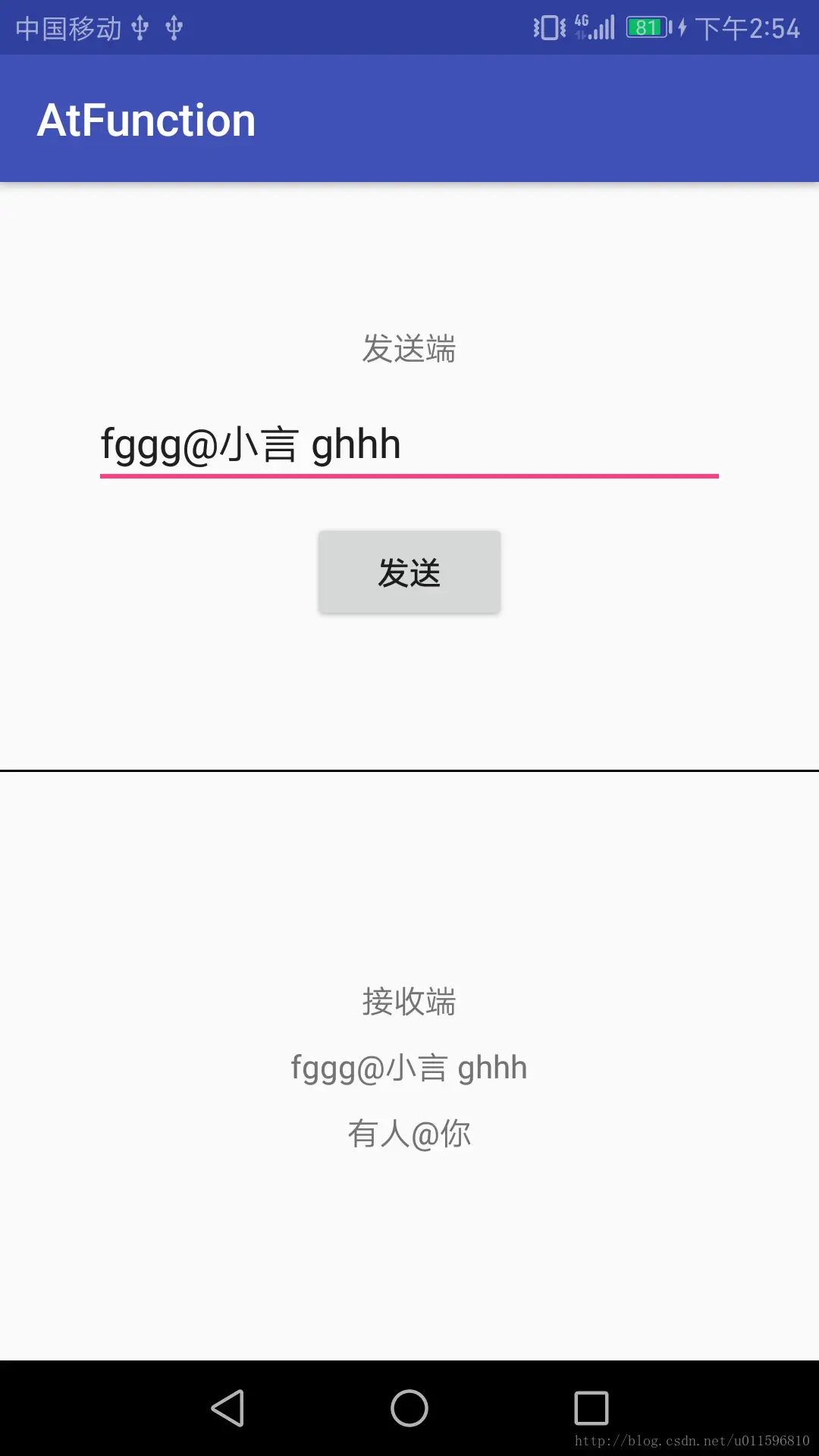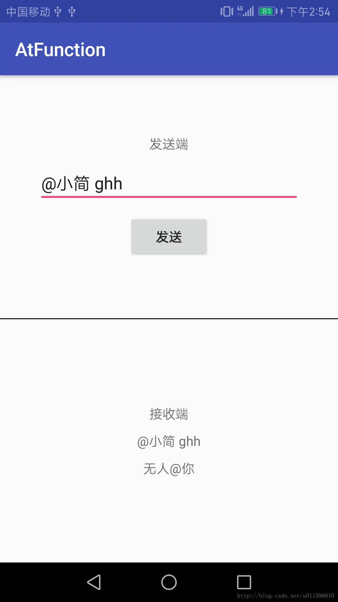 其实,这功能的难点在于如何判断是否有人@自己,在之前,我是通过对于消息的截取进行判断是否有人@自己,但是后来发现假如是名字相同的话,就作废了。