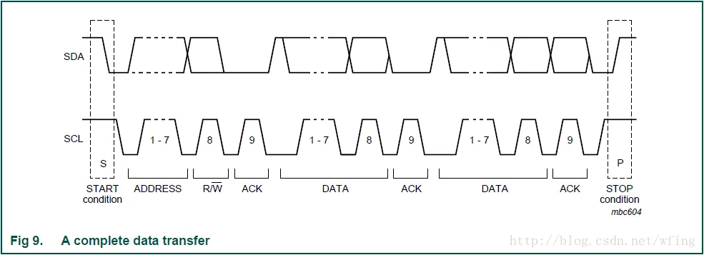 那么,加上 I2C 的读写位之后, I2C 数据传输会是什么样的呢?