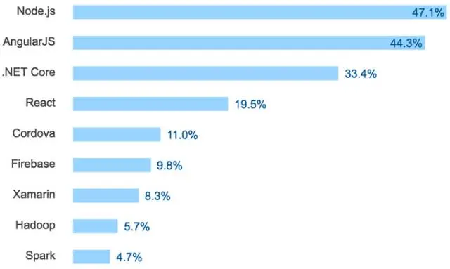 Node.js 和 AngularJS 仍然是这一类中最常用的技术。
