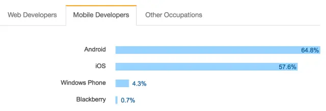 大约有四分之三的受访者是 web 开发人员,不过这其中也有许多人表示正在努力构建桌面应用和移动应用。
