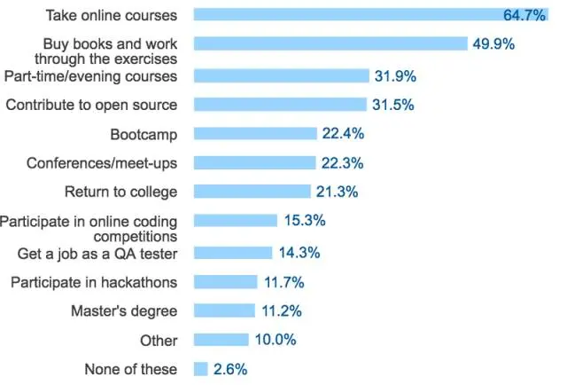 想学习编程,但不知道从哪下手? 调查显示开发者建议先进行在线课程,然后买一本书练习。
