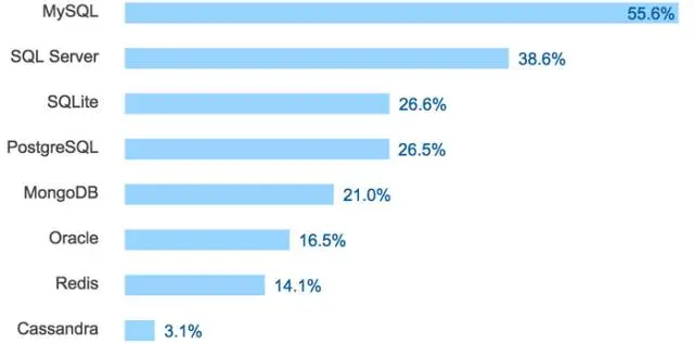 首次对数据库进行调查,MySQL 和 SQL Server 是最常用的。