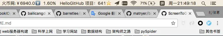 12、bitbar:Bitbar 是可以将任何(自己或别人写好的)脚本的输出到 Mac OS 的状态栏上。同时,支持自定义更新频率。例如:比特币的价格、HelloGitHub 项目的 star 数量(欢迎star本项目