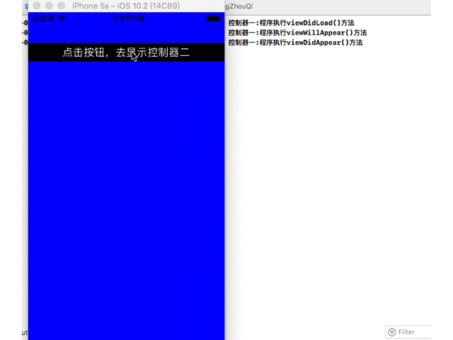NSLog(@"控制器一:程序执行viewWillAppear()方法");