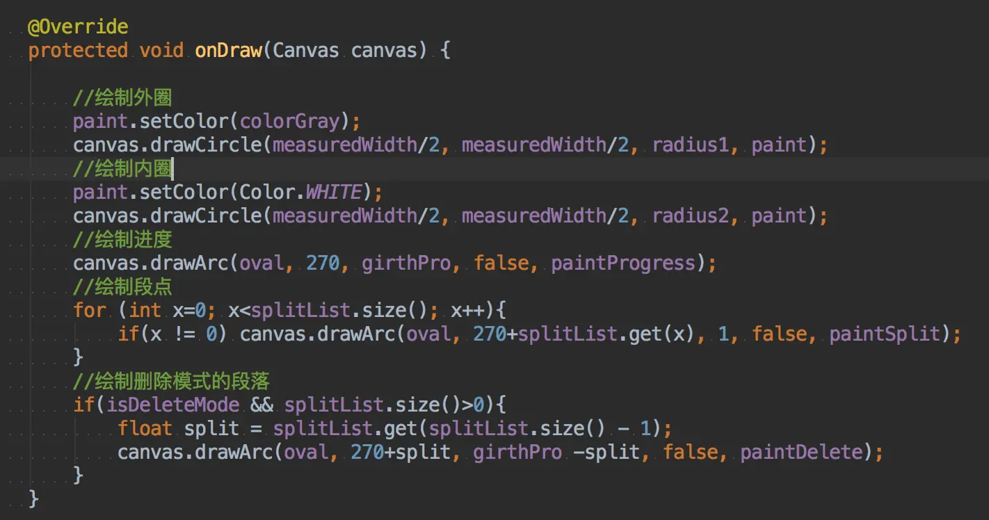 然后还要改进RecordedButton, 需要绘制段落(就是外面蓝圈中的白色小点点), 来提醒用户: