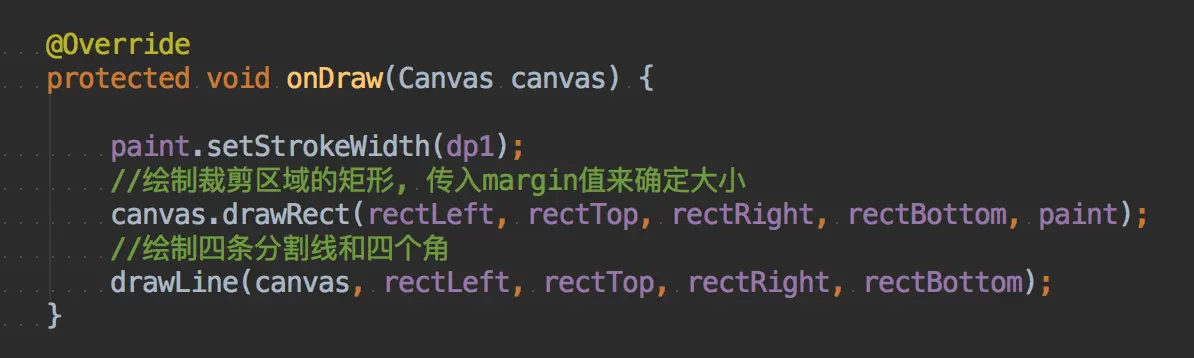 分为2个部分来绘制, 显示外面一圈的矩形, 然后是4条线和4个加粗角, 绘制过程十分枯燥, 就是根据位置各种算坐标, 很简单, 想了解的自己来看源码.