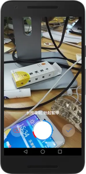如图所示, 其实实现起来也很简单, 之前单段拍摄视频的逻辑是将一个拍摄好的ts文件转成mp4, 这次的改动就是用户每点击一次拍摄, 都生成一个ts文件, 然后将多段的ts文件合成一个mp4, 所要做的逻辑只是ffmpeg语句更改: