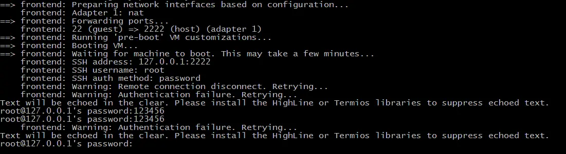 ==> frontend: Waiting for machine to boot. This may take a few minutes...