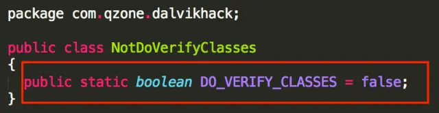 所以,为了可以正常的进行打补丁修复,必须避免类被打上CLASS_ISPREVERIFIED标志,具体的做法就是单独放一个类在另外DEX中,让其他类调用。
