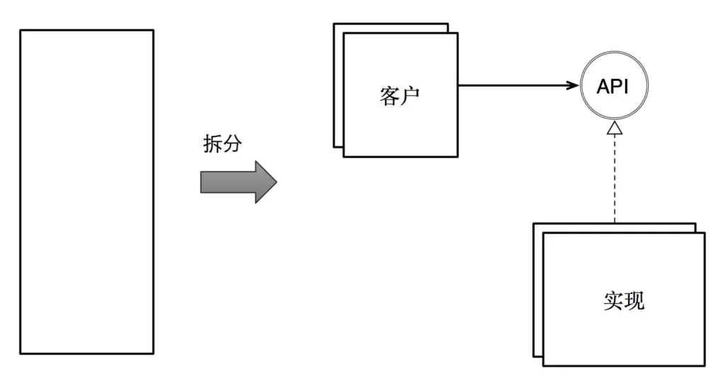 - 将一个大单元划分为多个小单元之后,它们之间必然要通过衔接点进行合作。如果我们把这些衔接点看作API,那么问题就变为:怎样定义API才是合理的?