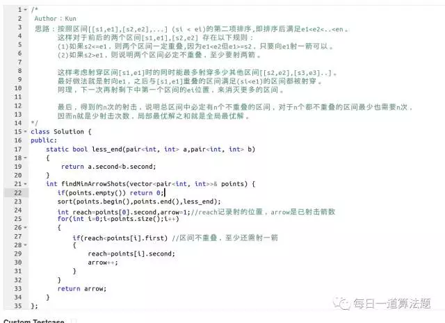 @逍遥居人 的提交详细的说明贪心算法的关键点(重叠的points越多越好),他代码的思路也跟文中描述的有点不一样,他是从最后一个区间开始往回找。