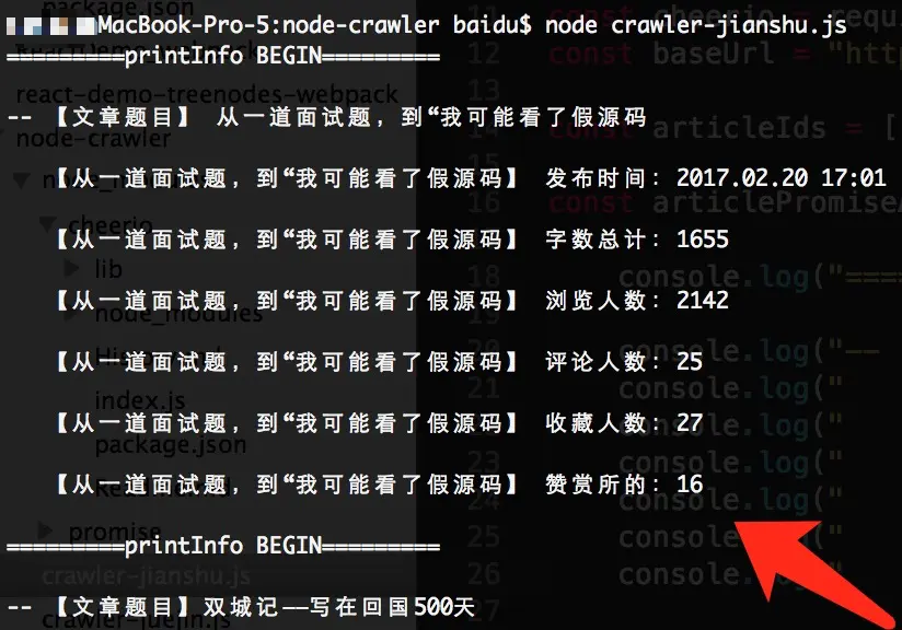 filterArticles方法返回了每篇文章我们感兴趣的内容。这些内容存储在articleData对象当中,最终由printInfo进行输出。