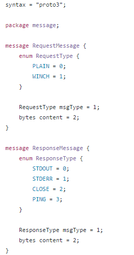 PLAIN 消息中,content 是用户输入的字节数组。WINCH 中,content 则是一个包含终端长和宽的一个 JSON 串的字节数组。