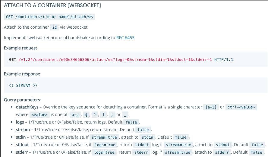 在介绍服务端和 Docker 通信的实现之前,让我们先看一下 Docker 的一个 API。