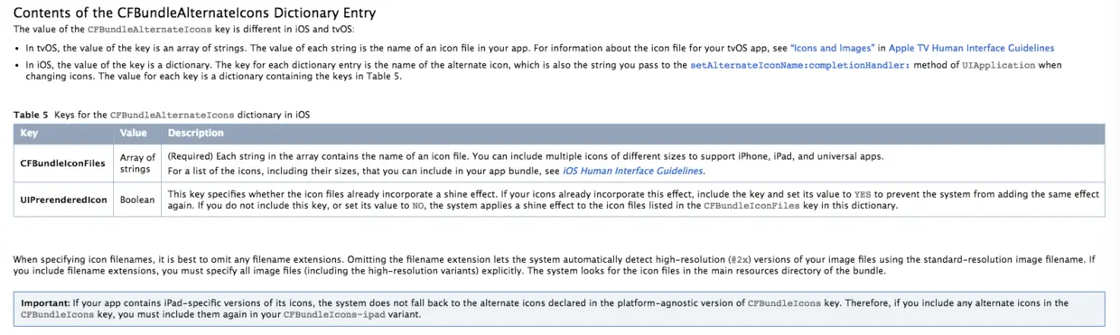如果你需要支持 iPad,建议这里使用 83.5pt(iPad Pro)的图片资源。另外还有些其他关于在 iPad 上替换图标的注意事项,在这里有说明,注意我们这里在 info.plist 里面所用的 key 是 CFBundleIcons,还有另外一个 key 是 CFBundleIcons~ipad。