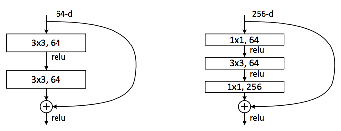 图16 两层及三层的ResNet残差学习模块