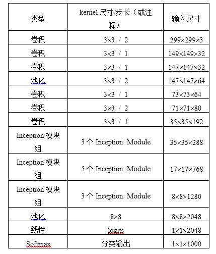 表1 Inception V3网络结构