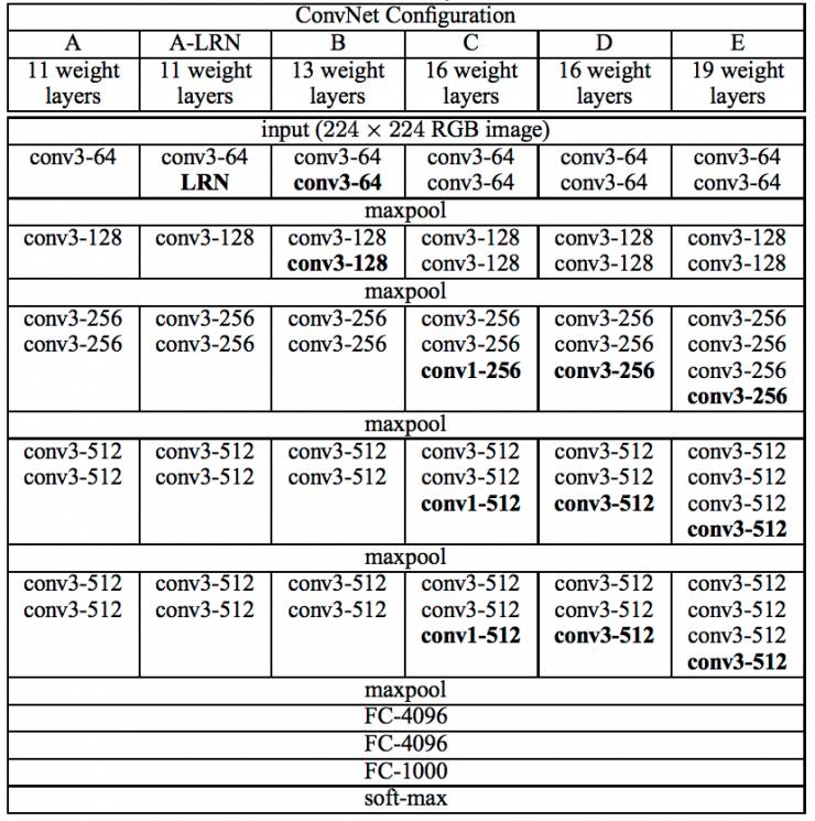 图6 VGGNet各级别网络结构图