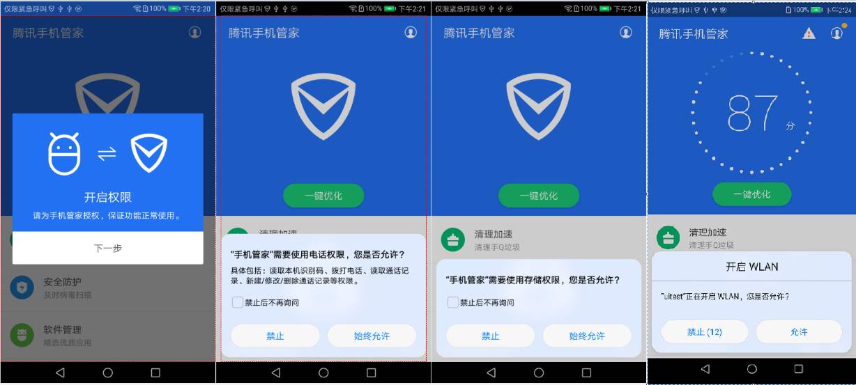 权限弹框,是手管UI自动化中的一个大坑。如下图,是测试手管过程中,在华为手机上遇到的部分权限弹框。这些弹框,并不会用例每次执行都弹出,不同厂商的弹出框也不一致。显然点击弹框的逻辑,写在case逻辑中,只会导致自动化变得更复杂更不稳定。
