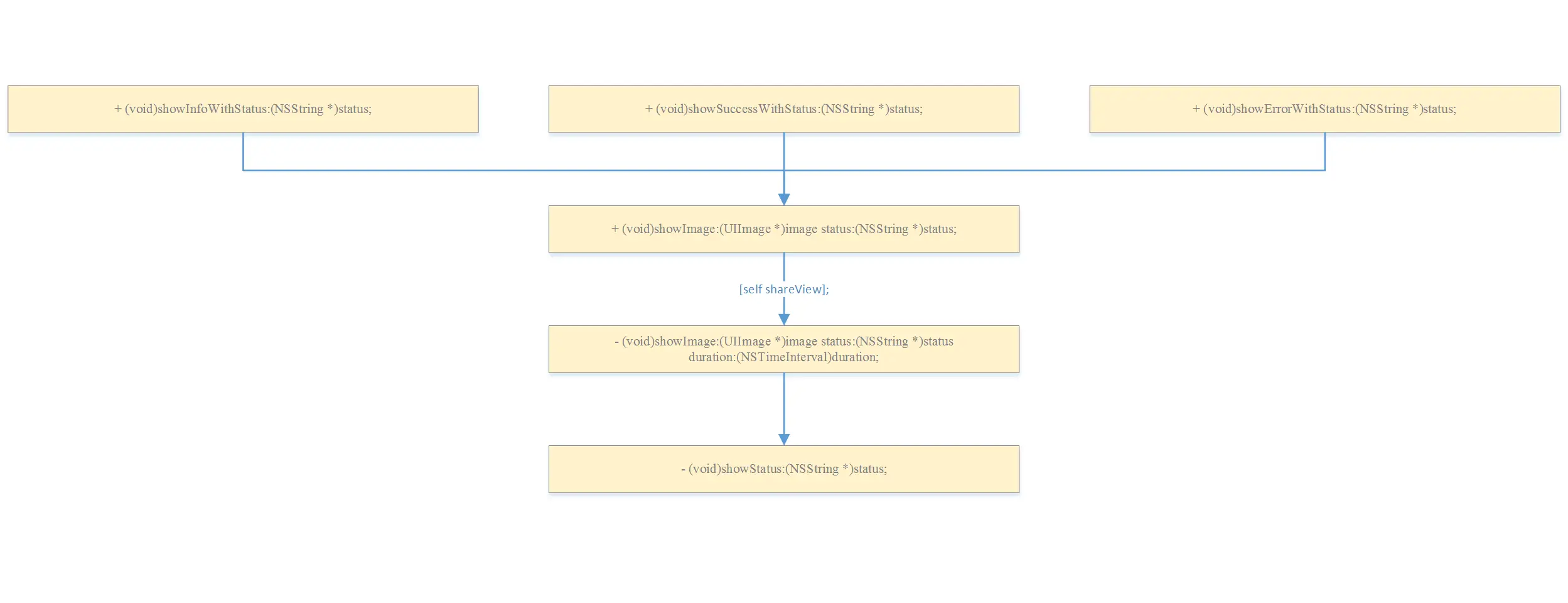 SVProgressHUD中提供如下几种用于展示图片的方法, 他们的调用流程如下图所示