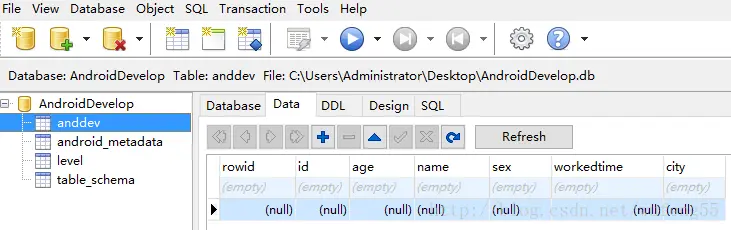 可以看到,AndDev 表中增加了一个 city 列,level 表也创建成功了。
