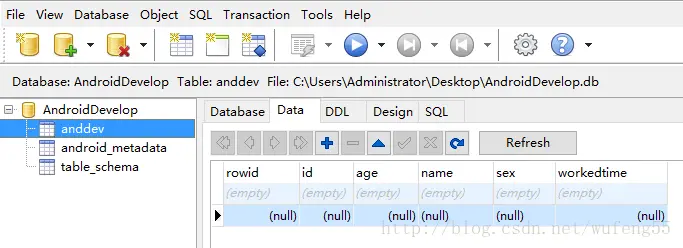 可以看到,一组数据成功添加进了我们的 AndDev 表。