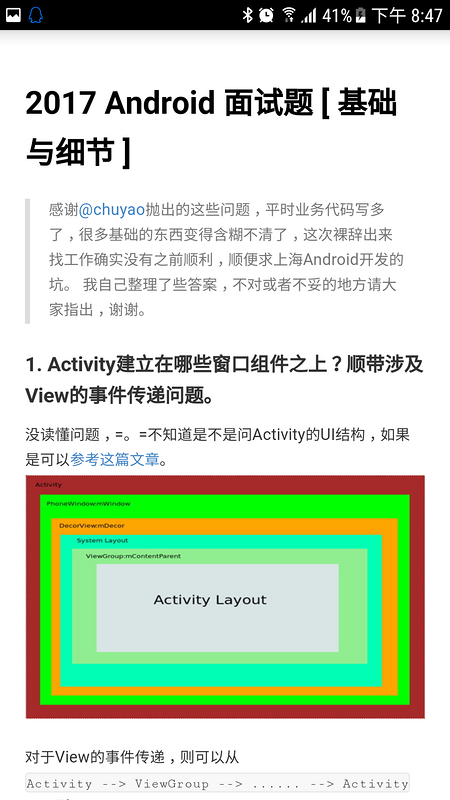 测试文章地址: [2017 Android 面试题 [ 基础与细节 ]](github.com/didikee/An.…
