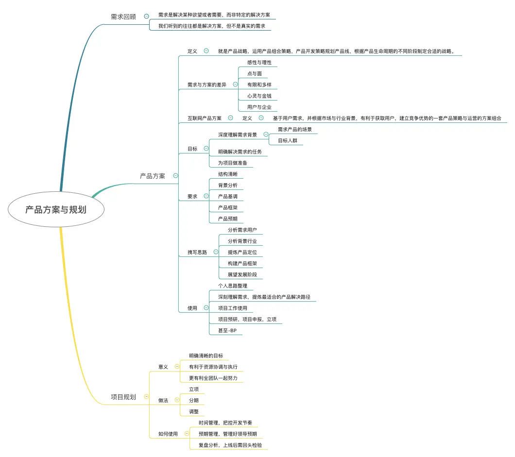 产品方案是思考过程,项目规划是落地过程,方案是项目的指导,就像理论与实践的关系