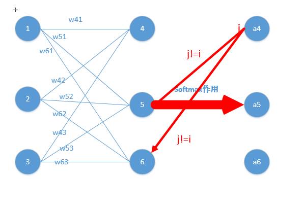 w51.....w63等参数的偏导同理可以求出,那么我们的关键就在于Loss函数对于结点4,5,6的偏导怎么求,如下: