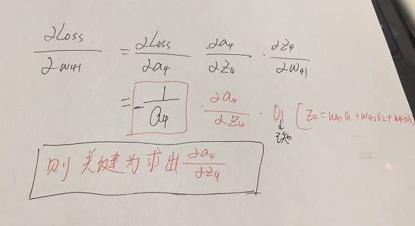 那么Loss就变成了Loss = -yjlnaj,累和已经去掉了,太好了。现在我们要开始求导数了!