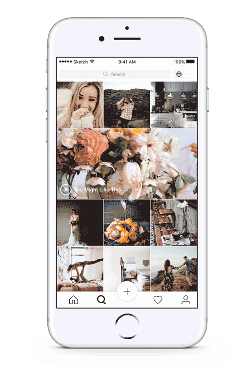 老实说,我喜欢Instagram当前的设计。为了增加极简主义,我对浏览icon做了一些轻微的改变,并且加了一些负型空间来保持设计的一致性。