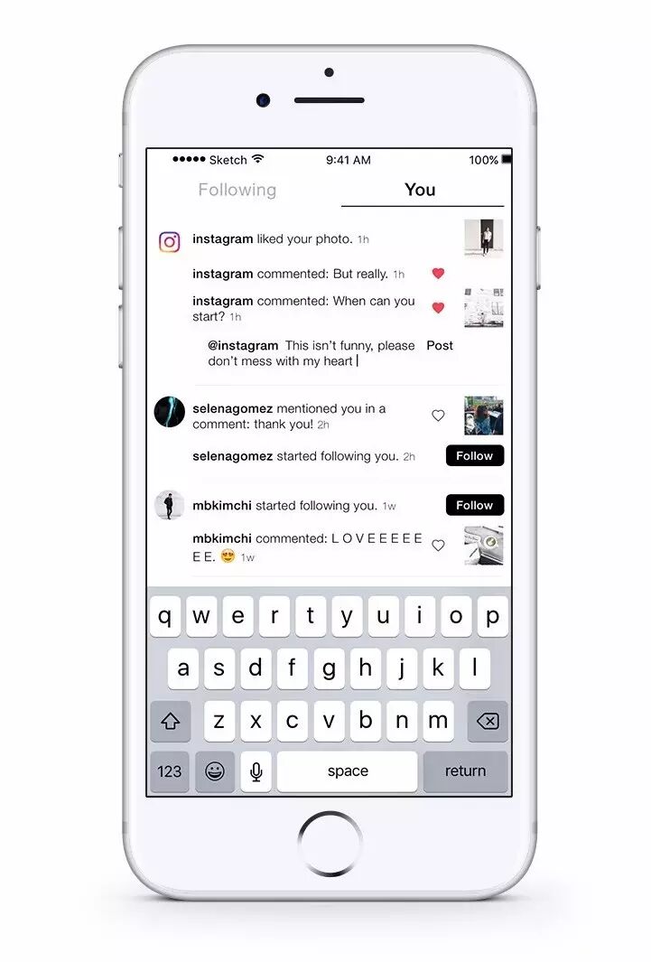 在这期间一个有趣的事实是——在我访谈过只有35%的Instagram用户查看过正在关注的人的动态。是否保持这个功能可能是我不得不做的最难的一个决定,我决定保留它并且在某种程度上简单的重设计它,因为我希望通过让图片变大来吸引更多的注意力。