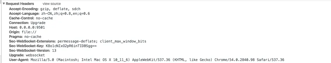 Sec-WebSocket-Key:K8o1cNIxO2pR6inTIDBSgg== #传输给服务器的key