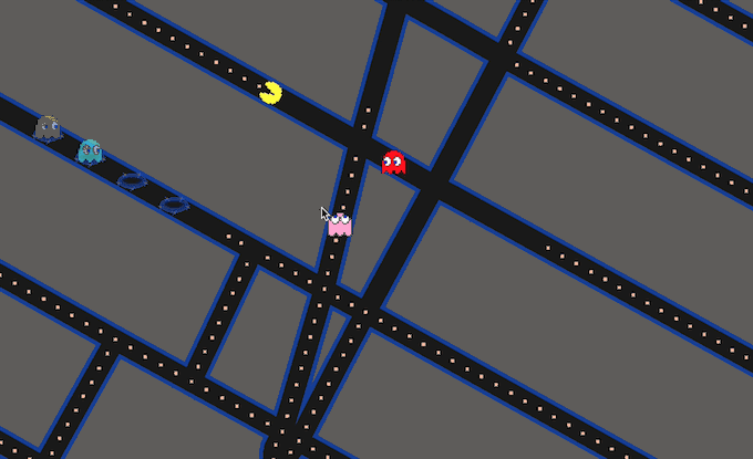 Google 地图把道路变成了经典游戏“吃豆人”的游戏地图,当用户在使用导航时,会看见由豆子组成的路线图,根据地图上显示的情况,避开幽灵标记,以便安全到达目的地。如果用户觉得饿了,还可以吞吃豆子或樱桃。吃豆人地图导航使用起来十分简单,选择地点只需按上、下、左、右即可。
