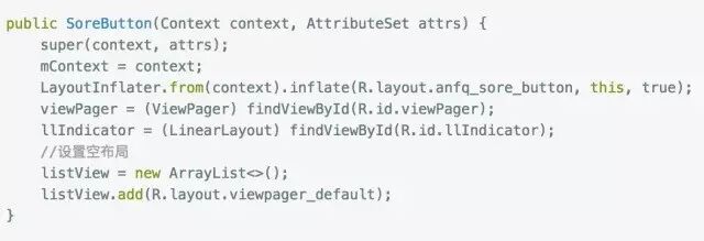 拿到了自定义控件的布局中ViewPager和LinearLayout,并且设置了一个空布局。