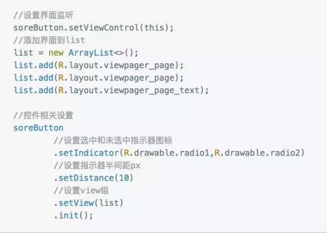 还提供了设置指示器图标的方法,以及指示器间距的方法,最后必须调用初始化方法init进行初始化