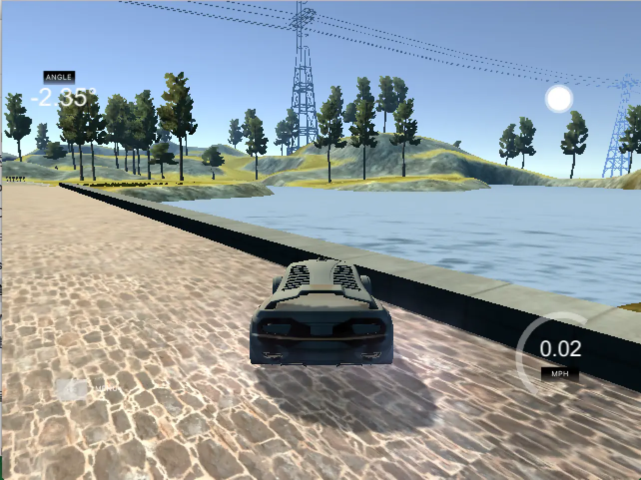 而后继续训练,跑模型,完美通过黑路路段。但是,在一个尖锐的拐弯处,冲出弯道,到水里去了