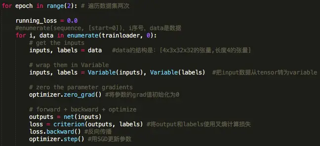 先不管running_loss,它是我们待会用来统计loss的平均值的。