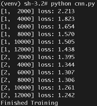 按照超简单!pytorch入门教程(三):构造一个小型CNN构建好一个神经网络,唯一不同的地方就是我们这次训练的是彩色图片,所以第一层卷积层的输入应为3个channel。修改完毕如下: