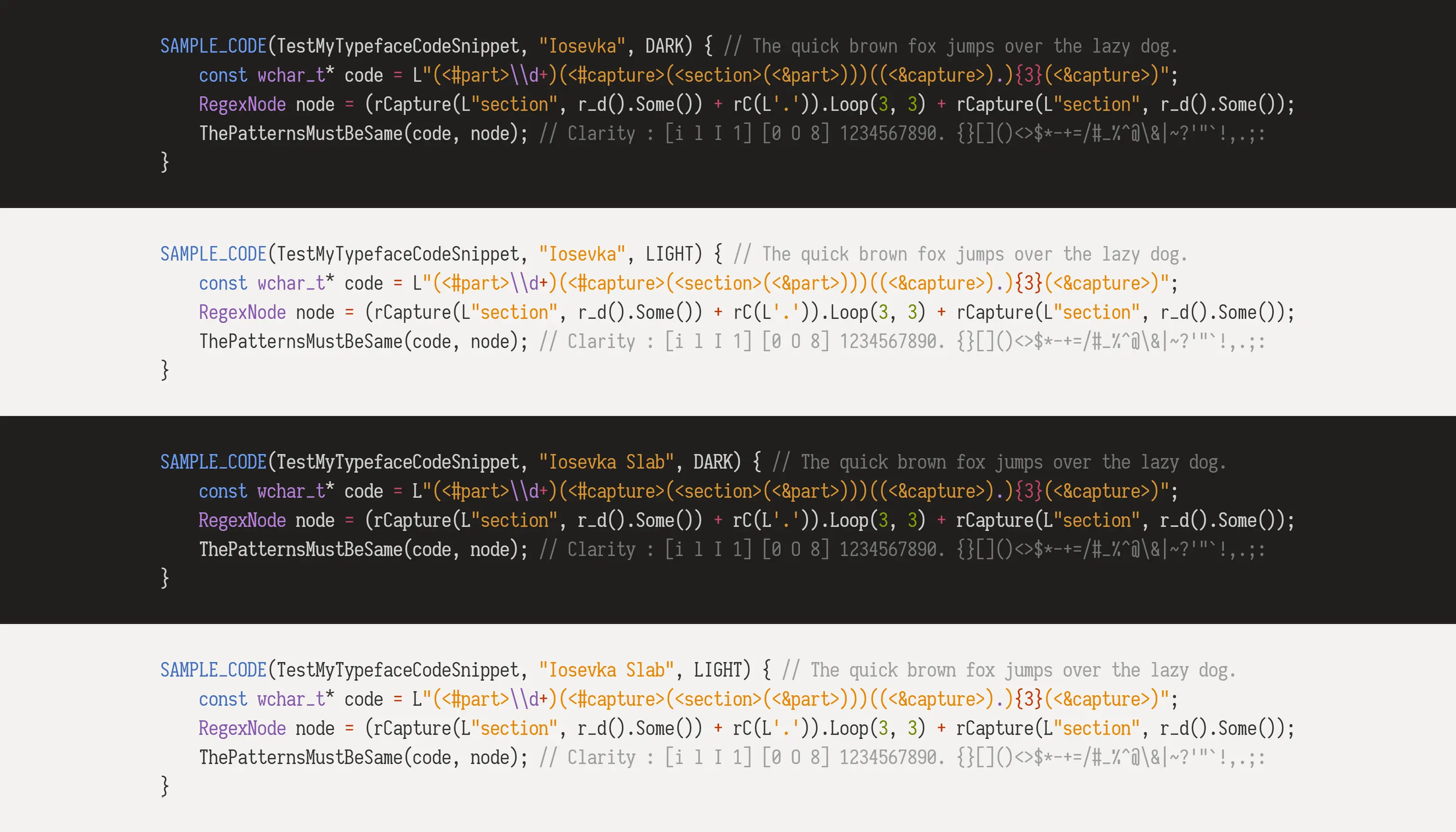 Iosevka comes with several visual styles, however they are inactive using the default build. To build these variants, you should perform custom build: